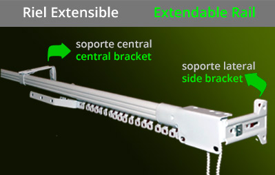 Extendable rail with cord operation for pencil pleat, box pleat, or three pinch curtains. Not suitable for S-wave curtains.