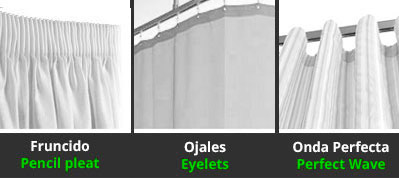 The garments that can be installed on a gutter are the ruffles, males, three pleats and perfect wave.