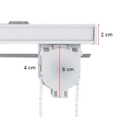 Riel de aluminio con accionamiento de cadena resistente y duradero para estores plegables y paqueto. Puede elegir entre un riel para estor plegable o para estor paqueto.