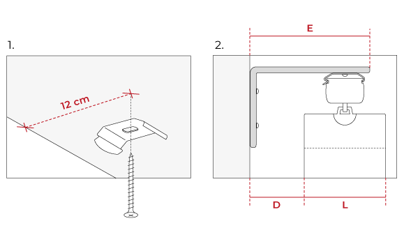 Cuando las lamas van instaladas a techo, aconsejamos fijar los soportes a una distancia de 12cm de la pared para tener un espacio mínimo de 5cm entre las lamas y la pared.
