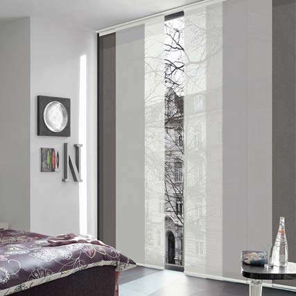 Debes tener en cuenta que el panel fijo siempre quedará por delante en tu riel. Es decir: si escoges, por ejemplo, un panel japonés con 3 paños con apertura hacia la derecha, el panel fijo será el de la derecha y este será el que quede por delante de tal forma que, los demás, se irán acumulando por detrás del fijo.