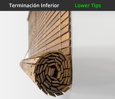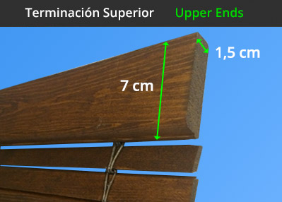 Su funcionamiento se basa en un sencillo mecanismo de subida y bajada. Está formada por unas lamas dispuestas en sentido horizontal, que van unidas entre ellas con unos ganchos metálicos. Para su apertura y cierre se enrollan o desenrollan gracias a un cordel que recorre la persiana por el centro. Para subirla y dejar paso a la luz, basta con tirar del cordel y esta se enrollará hasta quedar recogida en la parte superior, fijándola con un simple nudo o atando la cuerda a un lateral. El color natural, no incluye ningún tipo de tratamiento en la madera, para poder tratarla y barnizarla con el color deseado.