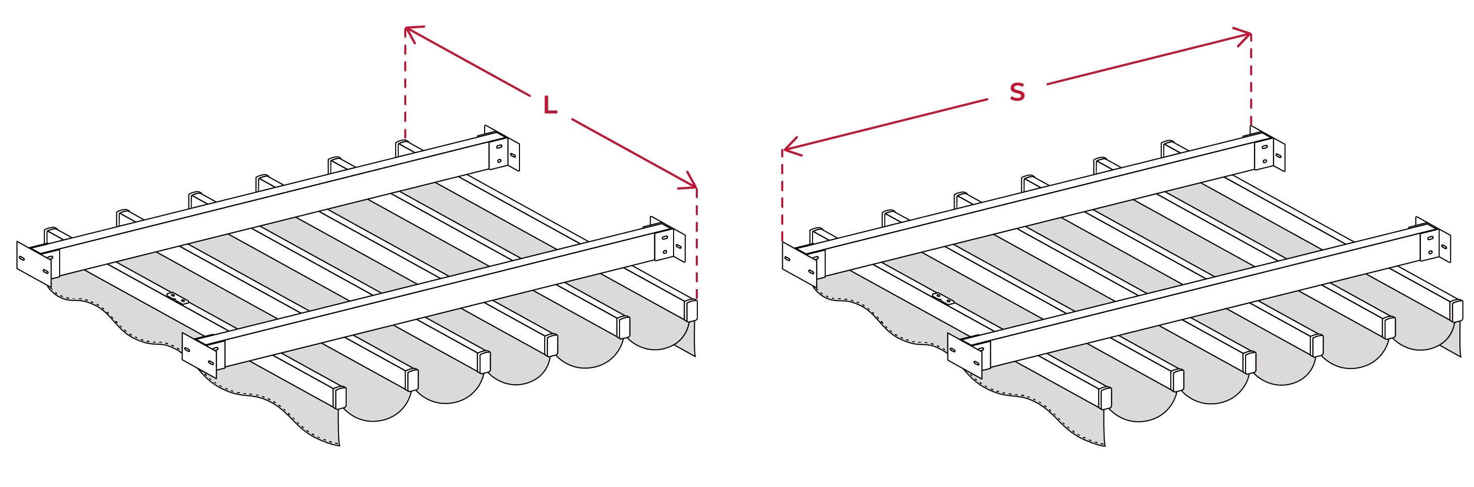 Corresponde al ancho total del toldo. En cambio, se recibirá el tejido con un 1 cm menos a cada lado para poder ser instalado correctamente.