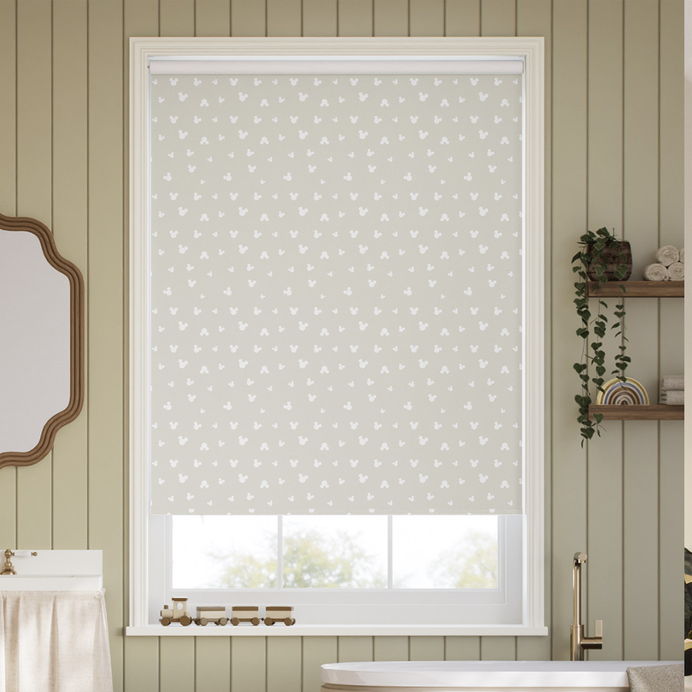Con una suave paleta que combina tonos de gris claro con matices neutros, este estor está decorado con llamativas siluetas de Mickey Mouse de Disney, creando un encantador efecto dentro del marco de tu ventana. No solo es una elección hermosa, sino también muy práctica, ya que su forro opaco garantiza una solución óptima de privacidad y control de luz.