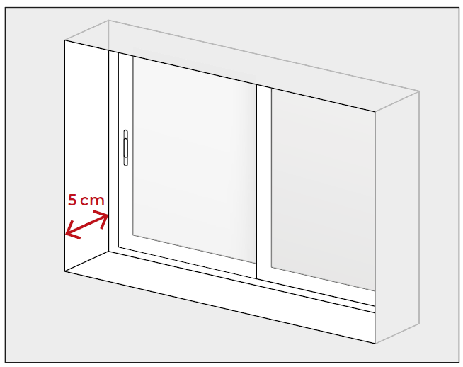Los estores enrollables Twist to Fit están diseñados para instalarse dentro de la hornacina de las ventanas encastradas, es decir, en el hueco del muro donde se aloja la ventana. Este espacio debe tener, como mínimo, 5 cm de profundidad.