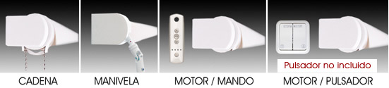 Todos nuestros estores enrollables llevan un sistema de soportes de hierro de gran calidad y alta durabilidad, lacados en blanco con enbellecedores de plástico a juego con el color de la cadena.