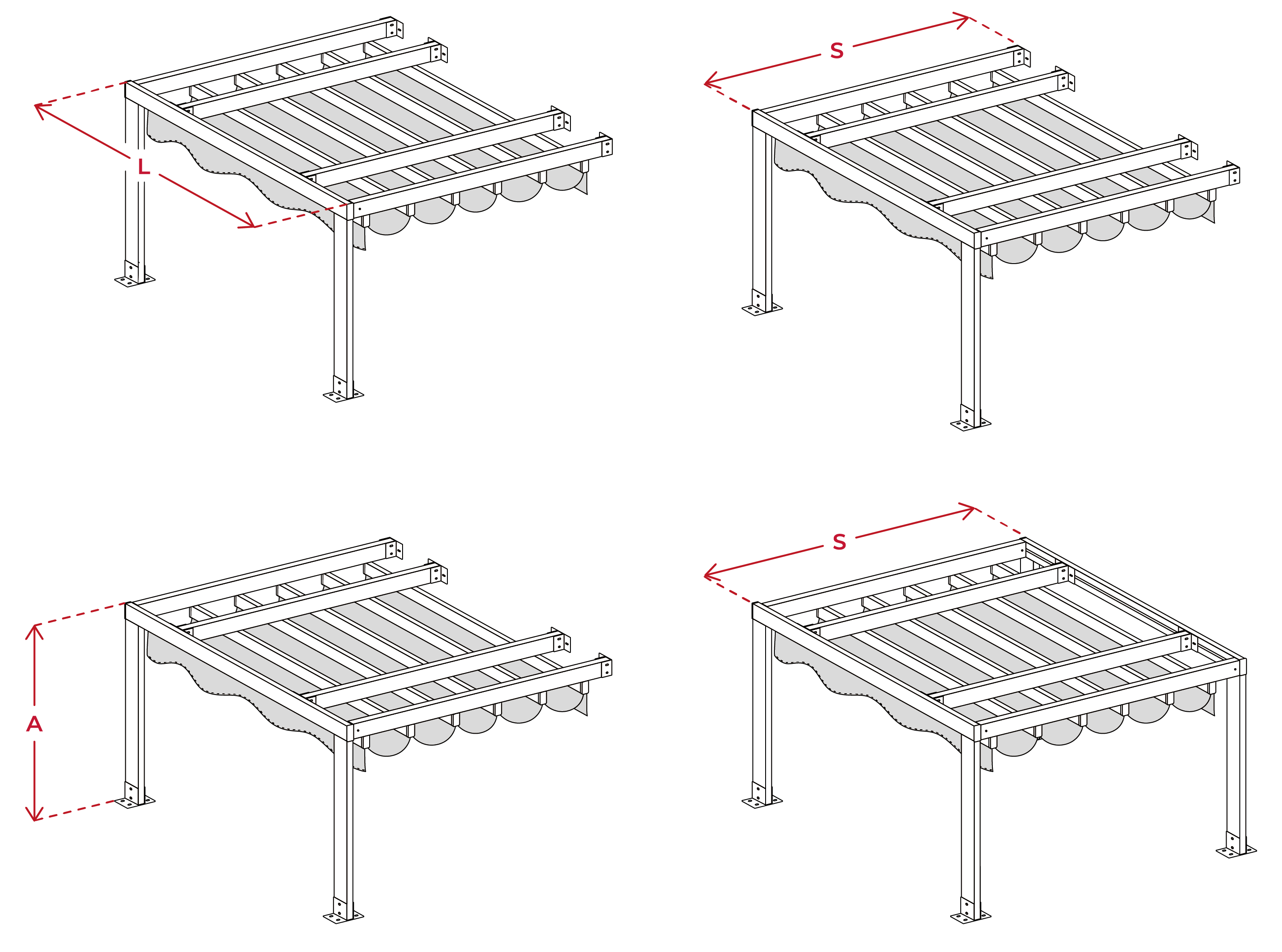 Este modelo é uma das opções mais populares para áreas exteriores personalizadas, especialmente em grandes terraços e alpendres. Este toldo do tipo pérgola foi concebido para uso diário, procurando sempre proporcionar protecção contra os raios solares e agradáveis áreas sombreadas.