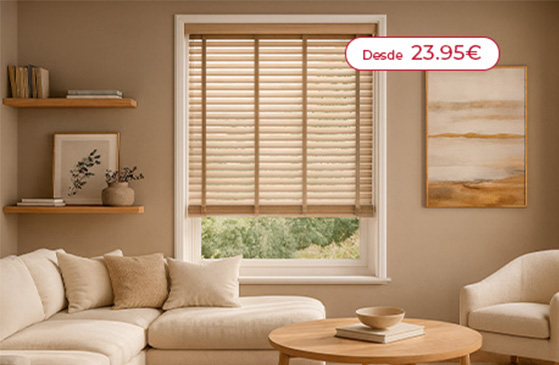 Se notar que a sua decoração é fria ou pouco acolhedora, as persianas venezianas são a melhor solução para obter essa sensação de aconchego em sua casa. Eles são feitos com lamas de madeira natural resistente à deformação. Além disso, se você quiser colocar persianas de madeira nos quartos mais úmido como o banheiro, também é possível com as persianas wood efeito. São resistentes à humidade graças às suas lâminas de PVC com revestimento em imitação de madeira.